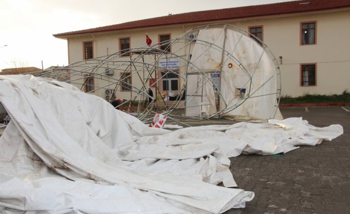 Cumhuriyet Mahallesi'ndeki eski Tekel bahçesinde, bir dernek tarafından düzenlenecek yardım kermesi için kurulan çadır rüzgar nedeniyle yıkıldı.