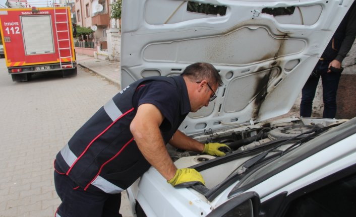 Yeşilırmak Mahallesi'nde park halindeki otomobilin motor kısmından kedi sesi geldiğini duyanlar, durumu itfaiyeye bildirdi.