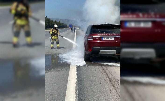 Anadolu Otoyolu'nun Düzce geçişinde seyir halindeki cipte çıkan yangın söndürüldü.