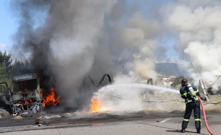 Kazada araçların yanması üzerine olay yerine itfaiye, karayolları, sağlık ve polis ekipleri sevk edildi.