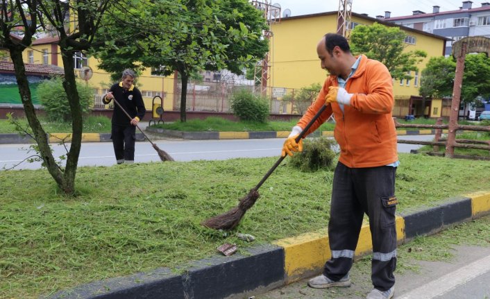 Artvin'in Arhavi ilçesinde belediye ekipleri çevre düzenleme çalışmalarını sürdürüyor.