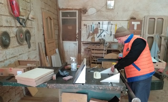 Evli ve 2 çocuk babası Gülçiçek, kendine ait iş yerinde mobilya üretiminin yanı sıra 10 yıldır fırsat buldukça artan malzemelerden masa üstü ve mini rahleler yapıyor.