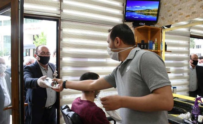 ARTVİN (AA) - Artvin Belediye Başkanı Demirhan Elçin, il merkezindeki berber, kuaför ve güzellik merkezlerine maske ve dezenfektan dağıttı.