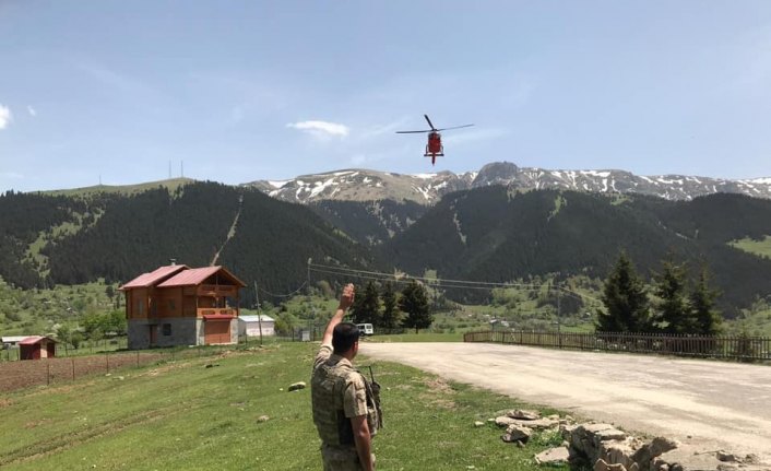 Gıda zehirlenmesi teşhisi konulan Kaya için sevk kararı verilmesi üzerine Trabzon'dan ambulans helikopter gönderildi.
