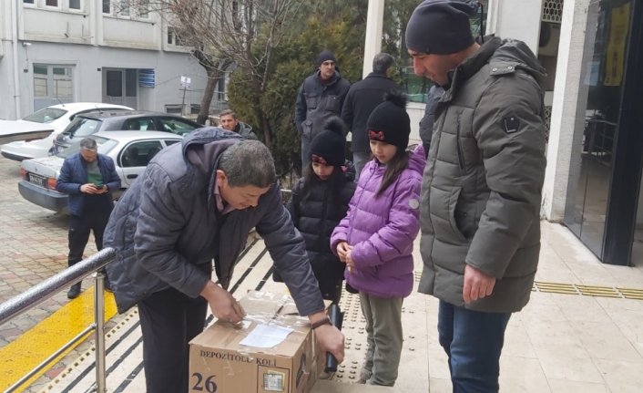 Fatıma Zehra (6) ve Elif Liya İspirli (8) adlı kız kardeşler, biriktirdikleri harçlıklarıyla babalarının da yardımıyla satın aldıkları gıda malzemelerini kolileyerek deprem bölgelerine gönderilmek üzere ekiplere teslim etti.