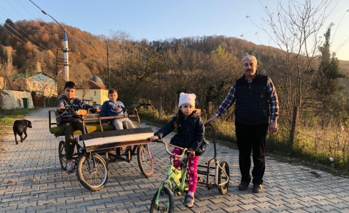 ZONGULDAK (AA) - Zonguldak'ta görev yapan imam Sabri Çakmak, atık malzemelerden yaptığı bisikletlerle çocukların yüzünü güldürüyor.