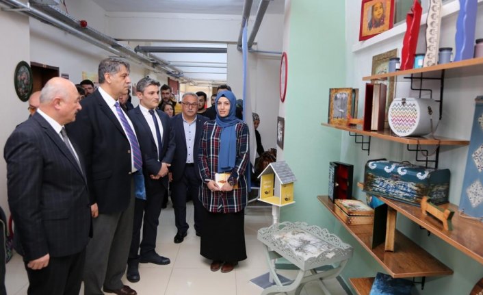 Sehpa, tepsi, çanta, resimlik, süs eşyası gibi sanatsal eserlere dönüşen ahşap eşyalar öğrencilerin elinde tekrar hayat bularak dekoratif ürün olarak sergideki yerini aldı.