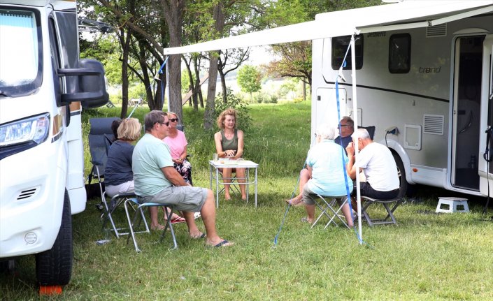 Almanya ve İsviçre'den 13 karavanla Türkiye'ye gelen 26 turist, 45 günlük gezi kapsamında Kastamonu'nun Daday ilçesine geldi.