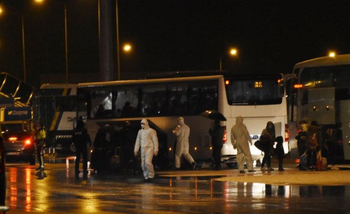 Uçaktaki 181 Türk vatandaşı, havalimanında bekletilen otobüs ve minibüslere bindirildi.