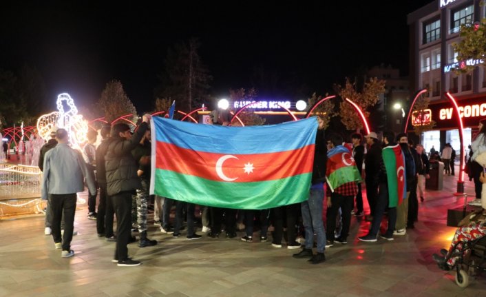 Ellerindeki Azerbaycan ve Türk bayraklarıyla Ermenistan'a karşı elde edilen zaferi eğlenerek kutlayan öğrenciler, daha sonra basın açıklaması yaptı.