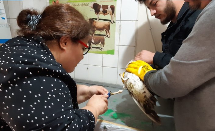 Ekiplerce alınan yaralı martı, ilçedeki özel bir klinikte görevli veteriner hekim Filiz Taslı'ya getirildi.