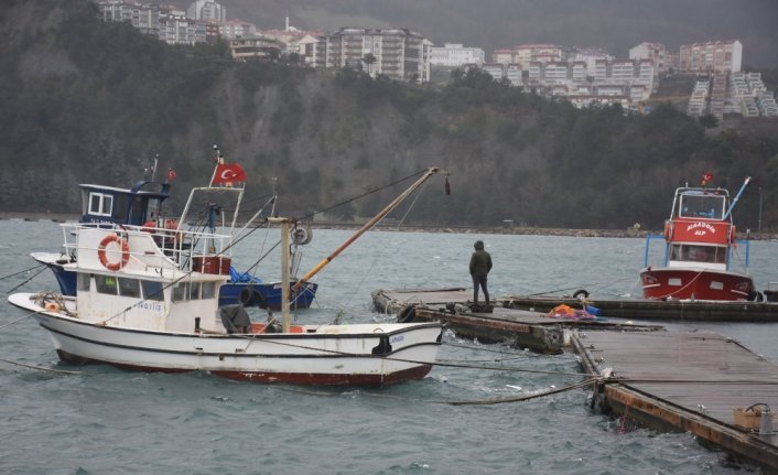 Olumsuz hava koşulları nedeniyle denize açılamayan balıkçılar, teknelerini limana güçlükle bağladı.