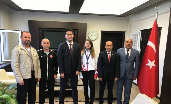 SAMSUN (AA) - Kavaklı tekvandocu Nazlı Şakar, Kaymakam İbrahim Engin Şenay'ı ziyaret etti. Bulgaristan'ın Sofya şehrinde düzenlenen 21. Balkan Tekvando Şampiyonası'nda 49 kiloda gümüş madalya kazanan Kavak Gençlik Spor Kulübü...