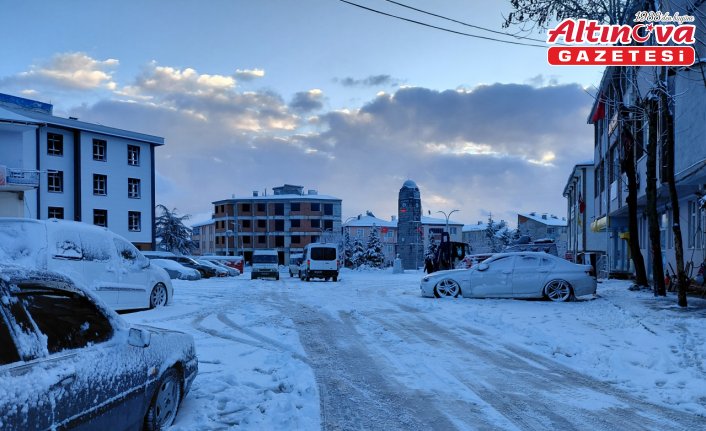 İlçe merkezi beyaz örtüyle kaplanırken, ekipler sürücüleri dikkatli olmaları konusunda uyardı.