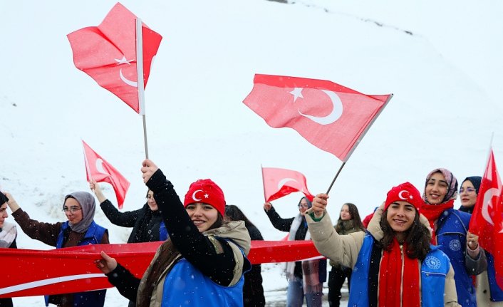 Ellerinde Türk bayraklarıyla bin metre yürüyen katılımcılar, Kop Şehitleri Anıtı'na ulaştı. Vali Mustafa Eldivan ve Belediye Başkanı Hükmü Pekmezci'nin anıta çiçek bırakmasının ardından dua edildi.