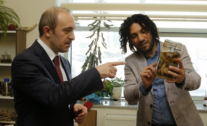 Sefalı'nın üniversitedeki çalışma ofisinde bitkileri inceleyen Epcim, Bayburt ismini bilim literatürüne yazdıran başarılı keşifler dolayısıyla Sefalı'ya teşekkür etti.