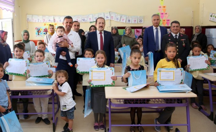Öğrencilerden tatilde kitap okumayı ihmal etmemelerini isteyen Pehlivan, çocuklara karne ve hediyelerini dağıttı.