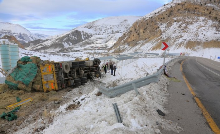 Celal Karagül idaresindeki 25 DZ 794 plakalı ot yüklü kamyon, Erzurum-Bayburt yolunun Kop Dağı Geçidi'nde şarampole devrildi.