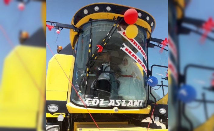 ÇORUM (AA) - Çorum'un İskilip ilçesinde dünyaevine giren çift, gelin arabasına dönüştürdükleri biçerdöverle düğün törenine gitti.