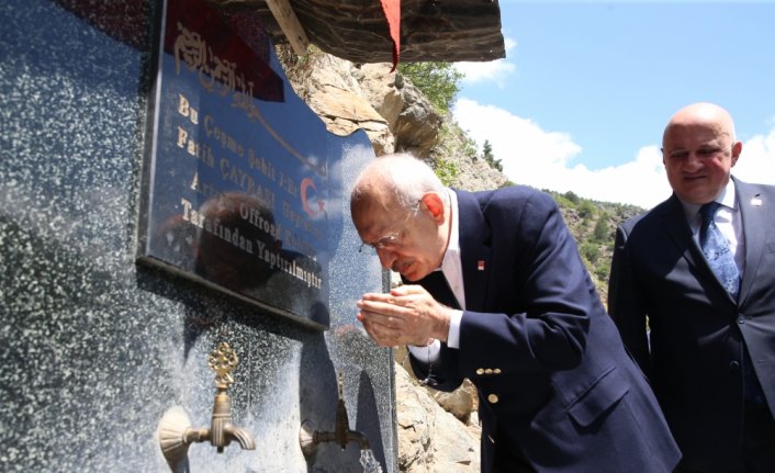 Saldırıda şehit olan Jandarma Er Fatih Çaybaşı için Artvin Ofroad Kulübü tarafından burada yaptırılan çeşmeye giden Kılıçdaroğlu, su içerek yüzünü yıkadı. Çeşme üzerinde yazılı olan 'Fatih Çaybaşı Hayratı' yazısını eliyle silen Kılıçdaroğlu, daha sonra mısır satışı yapılan yere girerek bir süre dinlendi.