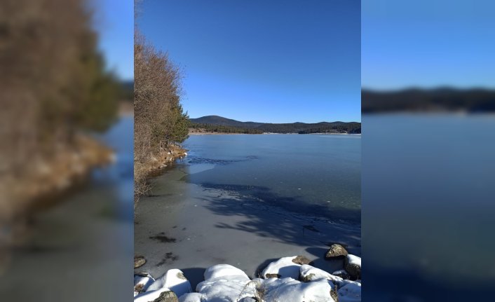 Bölgede görev yapan Bolu Orman Bölge Müdürlüğü ve jandarma ekipleri, vatandaşları buz tutan göletin yüzeyine çıkmamaları konusunda uyardı. BOLU AA