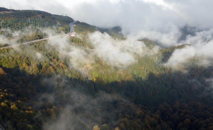 Bölgede etkili olan sis, dronla görüntülendi.    BOLU (AA)
