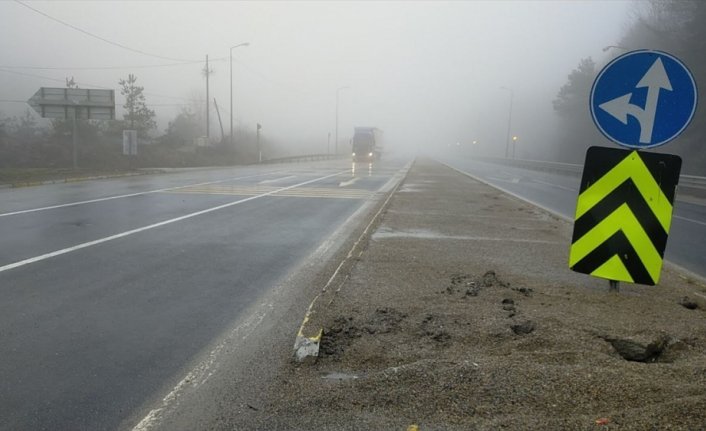 DÜZCE (AA) - D-100 kara yolunun Bolu Dağı Düzce kesiminde sis ve yağmur ulaşımı olumsuz etkiliyor.