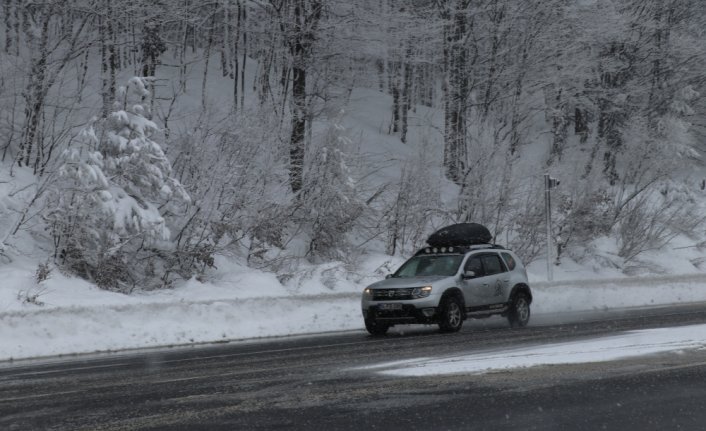 BOLU (AA) - D-100 kara yolunun Bolu Dağı kesiminde yoğun kar yağışı etkili oluyor.
