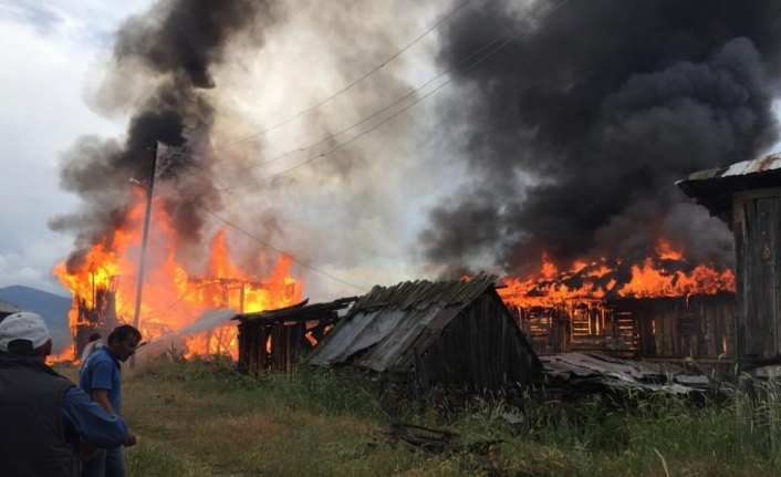 Yangında üç ahşap ev tamamen yandı.