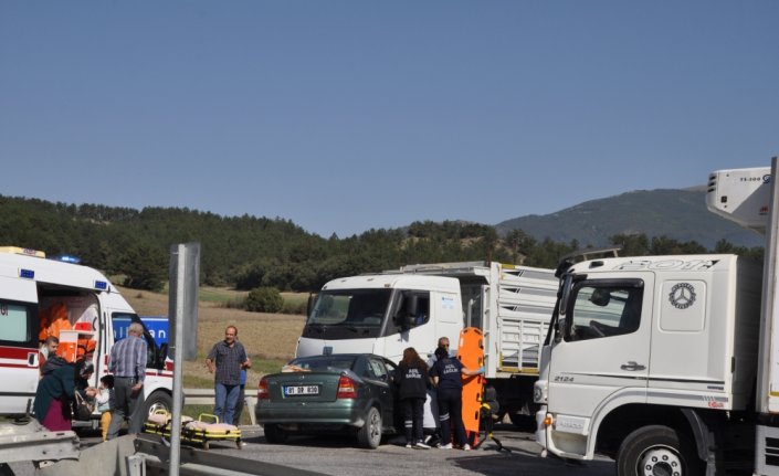 BOLU (AA) - Bolu'nun Mudurnu ilçesinde kamyonla otomobilin çarpışması sonucu 3 kişi yaralandı.