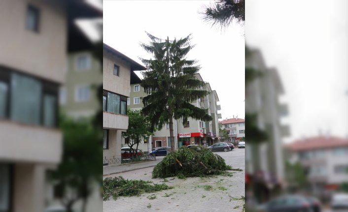 BOLU (AA) - Bolu'da etkili olan şiddetli rüzgar, bir ağacın üst kısmının kırılarak yola düşmesine neden oldu.