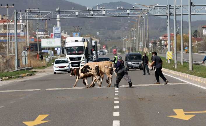 Ergin, köylerinde bulunan 200'ün üzerindeki büyükbaş hayvanla aynı anda göç ettiklerini dile getirerek, "Tüm köy sakinleri hayvanlarını aynı anda yola çıkarır. Yaylaya da birlikte gideriz. D-100 kara yolunu geçerken de polis ekiplerinden yardım isteriz. Sağ olsunlar onlar da bize yardımcı oldular." diye konuştu.