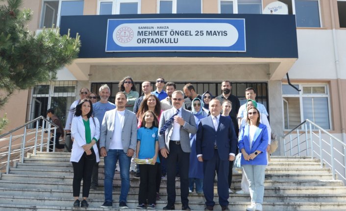 Mehmet Öngel 25 Mayıs Ortaokulu Müdürü Hüseyin Yavuz da Duman'ı başarısından dolayı tebrik etti.  Samsun AA