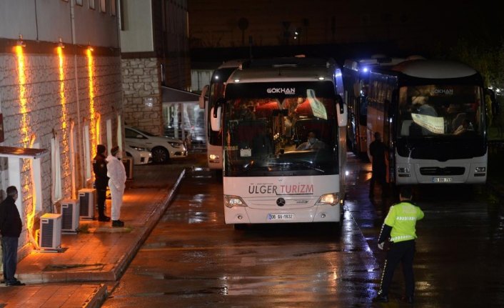 Yolcular daha sonra apronda bekletilen otobüslerle karantina sürecini geçirecekleri Karabük'e polis araçları eşliğinde getirildi.