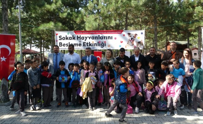 Etkinlikte Çorum Belediyesi tarafından hazırlanan mamalar çocuklara dağıtılarak, barınakta bulunan hayvanların beslenmesi sağlandı.