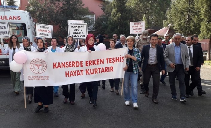 GİRESUN (AA) - Doğankent'te meme kanseri farkındalık ayı kapsamında meme kanseri farkındalık yürüyüşü etkinliği düzenlendi.