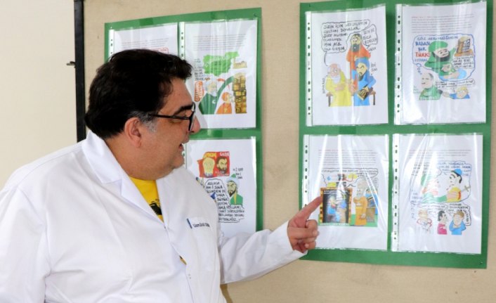 Coşkun'un, Tıp Bayramı dolayısıyla 14 Mart'ta açtığı "Tıp Tarihinde Türk ve Müslümanların Ayak İzleri" adlı karikatür sergisi, 1 Nisan'a kadar gezilebilecek.