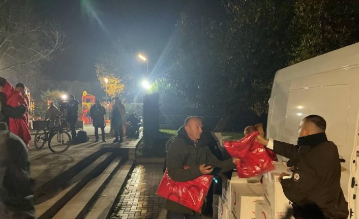 AFAD ve Türk Kızılay ekipleri, sokakta bekleyenlere battaniye ve sıcak çorba dağıtıyor.