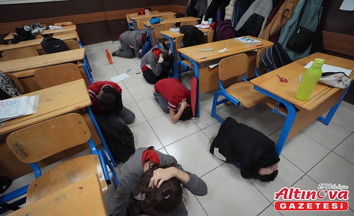 Siren çalmasının ardından sınıflarda sıralarının yanında "çök, kapan, tutun" hareketini yapan öğrenciler, ikinci sirenin ardından öğretmenleri eşliğinde binadan çıkarak bahçede belirlenen güvenli alanda toplandı.