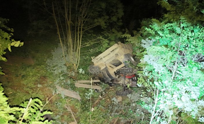Köylülerle birlikte traktörün devrildiği alana inen ekipler, bir ucu arazi aracına bağlı olan çelik halatla sedyeye koydukları yaralıları yukarı taşıdı.