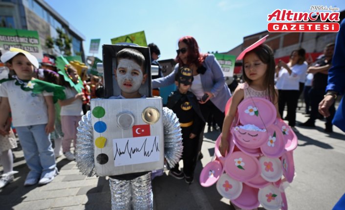 Bu kapsamda protokol üyeleri, atık malzemelerden tasarlanan kıyafetleri giyen öğrenciler ve vatandaşların katılımıyla bando eşliğinde kortej yürüyüşü yapıldı.