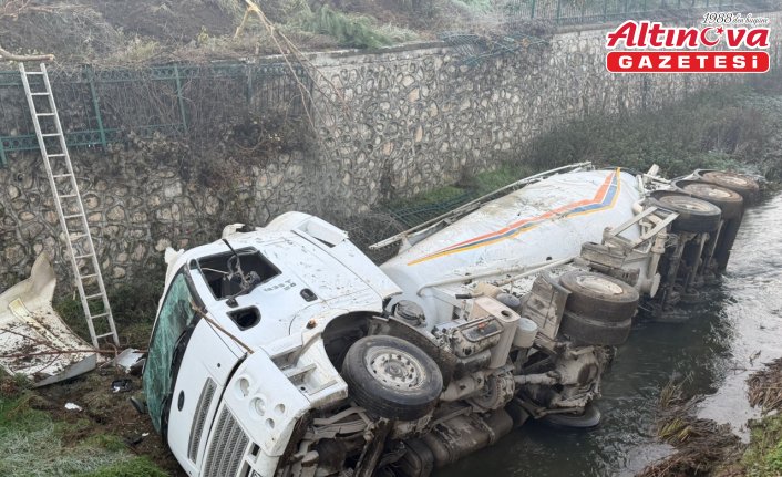 Düzce'de dereye devrilen çimento yüklü silobasın sürücüsü yaralandı