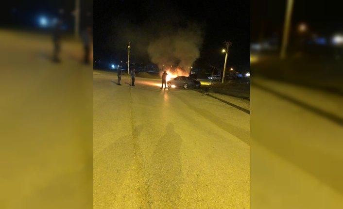 DÜZCE (AA) - Düzce'de yön tabelasına çarparak alev alan otomobil yandı.