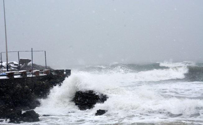 DÜZCE (AA) - Düzce'nin Akçakoca ilçesinde saatteki hızı 50 kilometreyi bulan kuvvetli poyraz nedeniyle dalga boyu 5 metreye ulaştı.