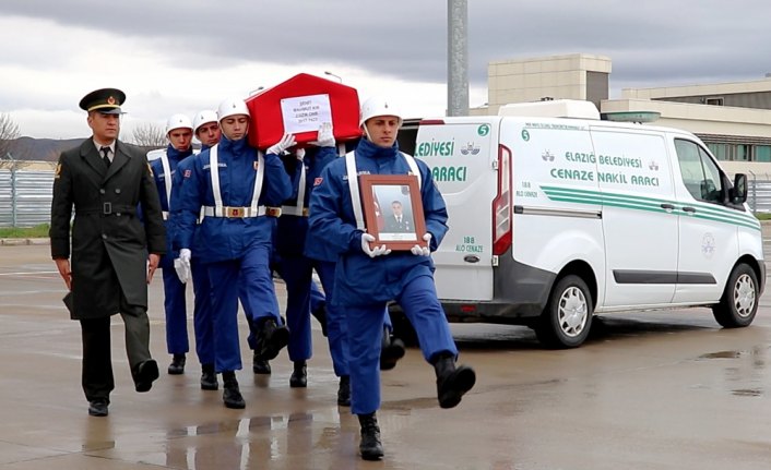 Tunceli'nin Nazımiye ilçesinde görevi esnasında arkadaşının silahından çıkan kaza kurşunuyla şehit olan Kır'ın cenazesi helikopterle Elazığ Havalimanı'na getirildi.