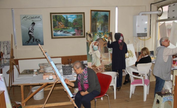 SAMSUN (AA) - Bafra Halk Eğitim Merkezinde düzenlenen resim kursuna 13 emekli kadın katılıyor.