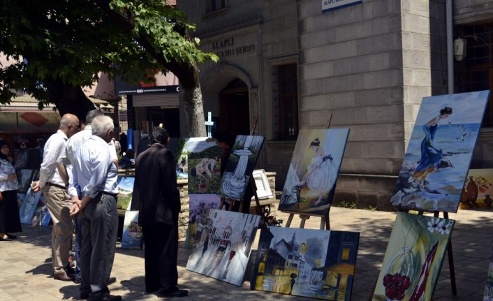 Alaplı'da resim eğitimi alan emekli ve ev hanımından oluşan 25 kadın kursiyerin yağlı boya eserleri, ilçe merkezinde düzenlenen sergiyle beğeniye sunuldu.