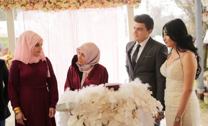 Nikah töreninin ardından çiftler, güne özel fotoğraflar çektirdi.
