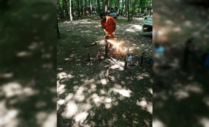 Belediyeden yapılan açıklamaya göre, Eyüpsultan Belediyesi Park ve Bahçeler Müdürlüğü ekipleri, piknik alanında bulunan ve çeşitli sebeplerden dolayı kullanılamayacak hale gelen oturma ünitelerinin bakım ve onarımını yapıyor.