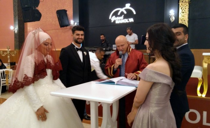 BAYBURT (AA) - Bayburt Özel İdare Spor'da forma giyen kaleci İsmail Cengiz, düğün töreninde hem nikah defterini hem de kulübüyle sözleşme imzaladı.